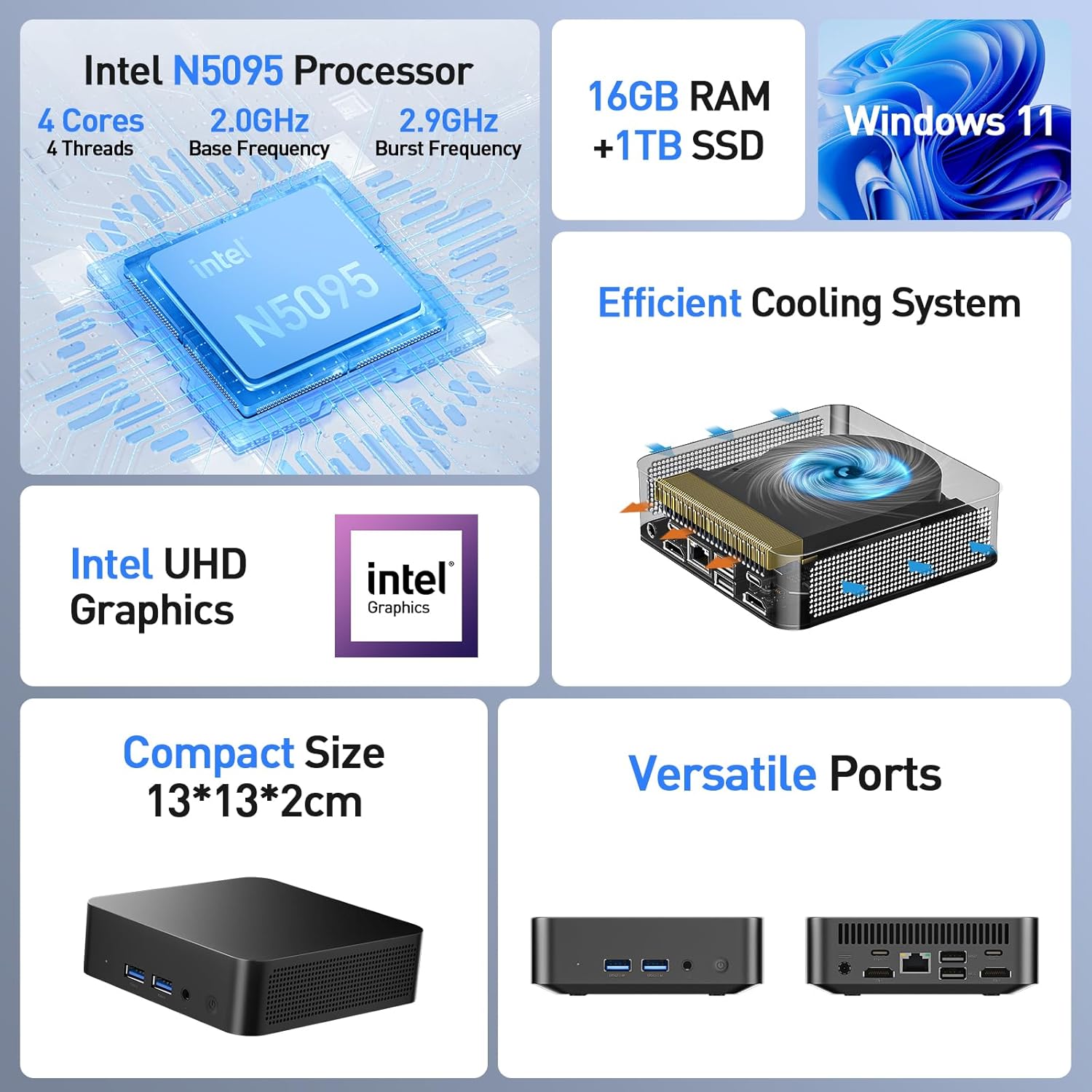 [Powerful Performance On A Tight Budget] Geared up with a fully-fledged Home windows 11 Professional working system, an Intel 2.9GHz quad-core processor, as much as 16 GB RAM, and 512 GB flash reminiscence, this mini desktop PC offers nice efficiency in multitasking and fast boot-up. Contemplating its Celeron N5095 CPU and built-in graphic card, do not count on it to fly in video games however for desktop duties like net looking, workplace work.