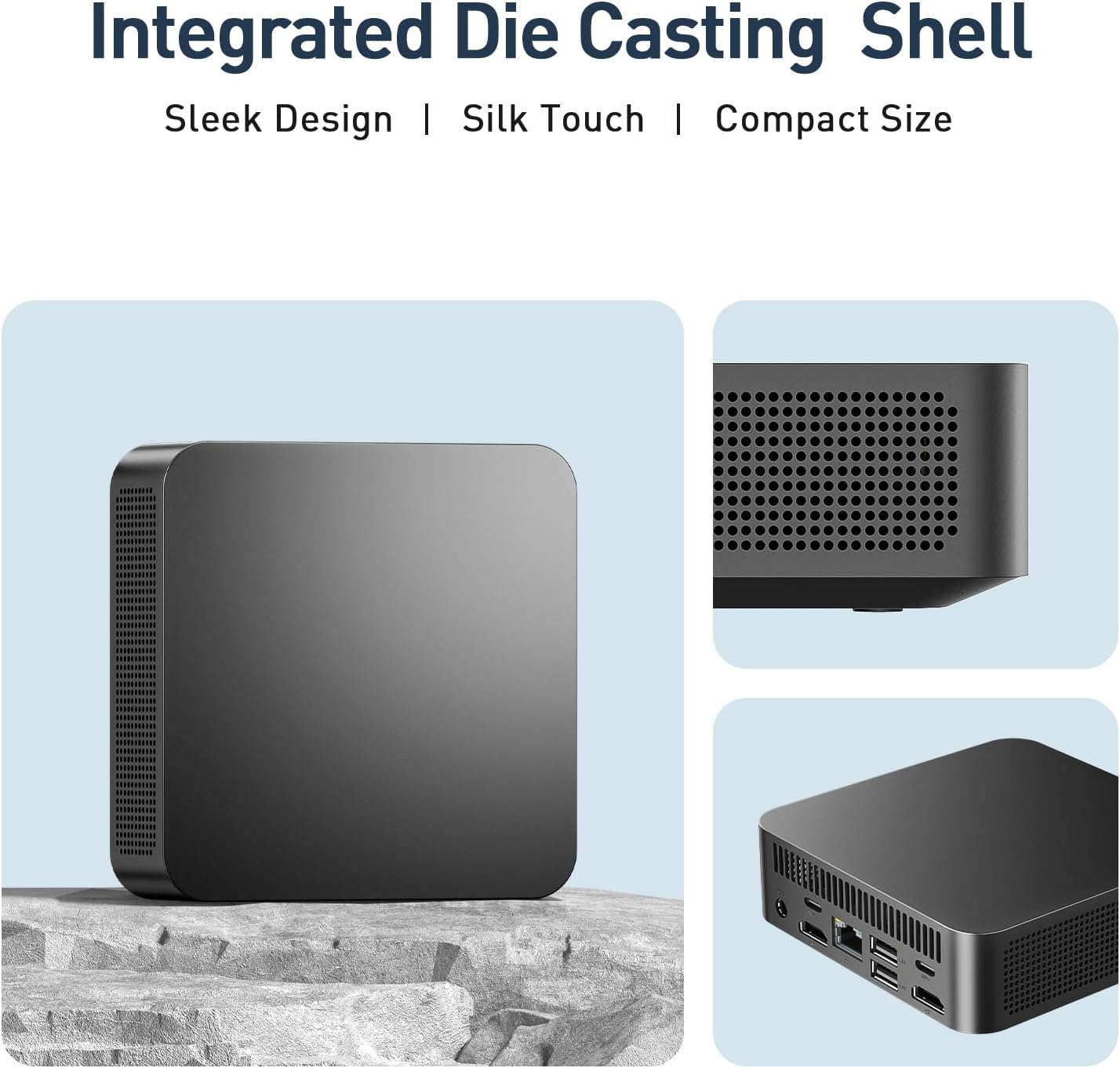 [Sleek Design & Compact Size] This mini pc is a mainstream efficiency system with a clear format and an unobtrusively elegant design. The graceful exterior has no joints, steps, or uneven surfaces. This provides a glossy impression and permits it to suit seamlessly into any atmosphere, besides that the compact design maximizes workplace desk and residential area effectivity. The slim profile permits set up on even slender counters.