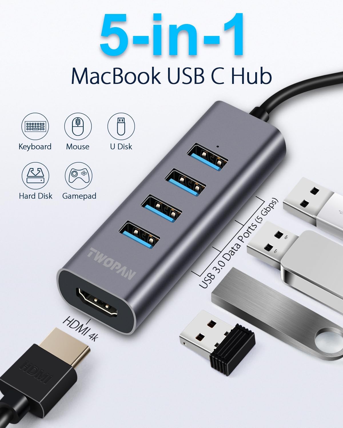 TWOPAN 5-in-1 USB C Hub