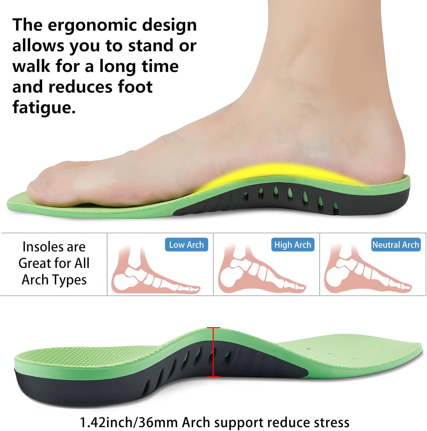 8 reviews for Arch Help Insoles (220+lbs) Plantar Fasciitis Reduction Insoles for Flat Ft, Work Boot Insoles, Reminiscence Foam Shoe Inserts for Operating and Mountaineering, Gel Orthotic Insoles for Males & Ladies