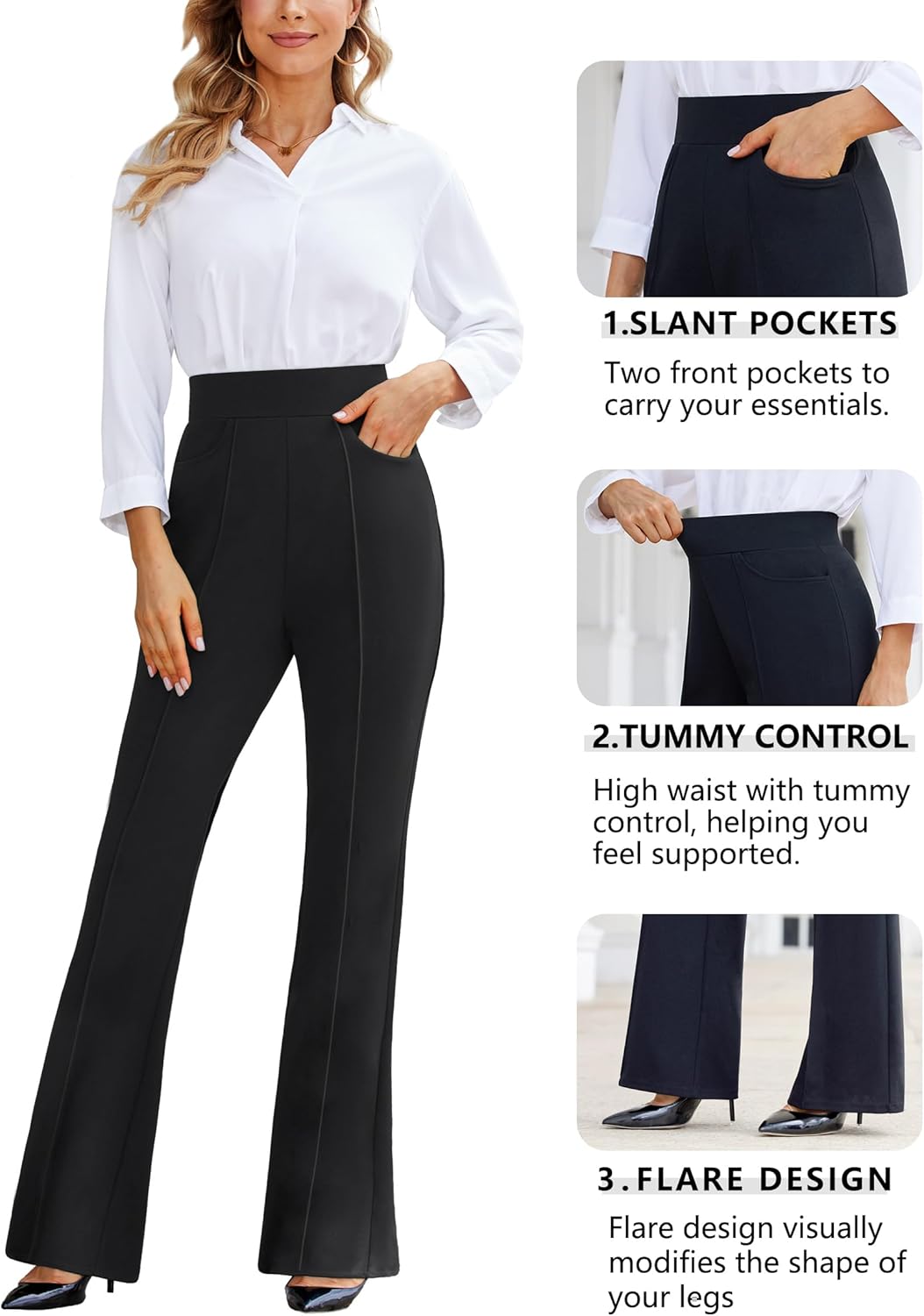 BANETTETA Girls’s Pull-on Stretchy Gown Pants with Tummy Management/Excessive Waist Slacks with Pockets for Enterprise Informal