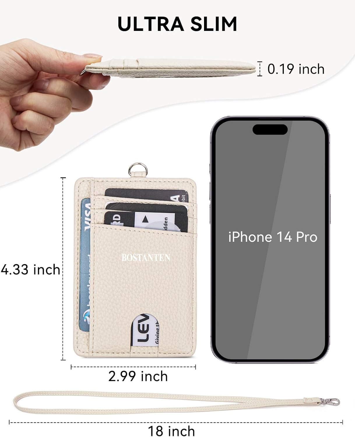 BOSTANTEN Slim Pockets Girls with Leather-based Neck Lanyard RFID Blocking Credit score Card Holder Entrance Pocket Small Pockets Beige
