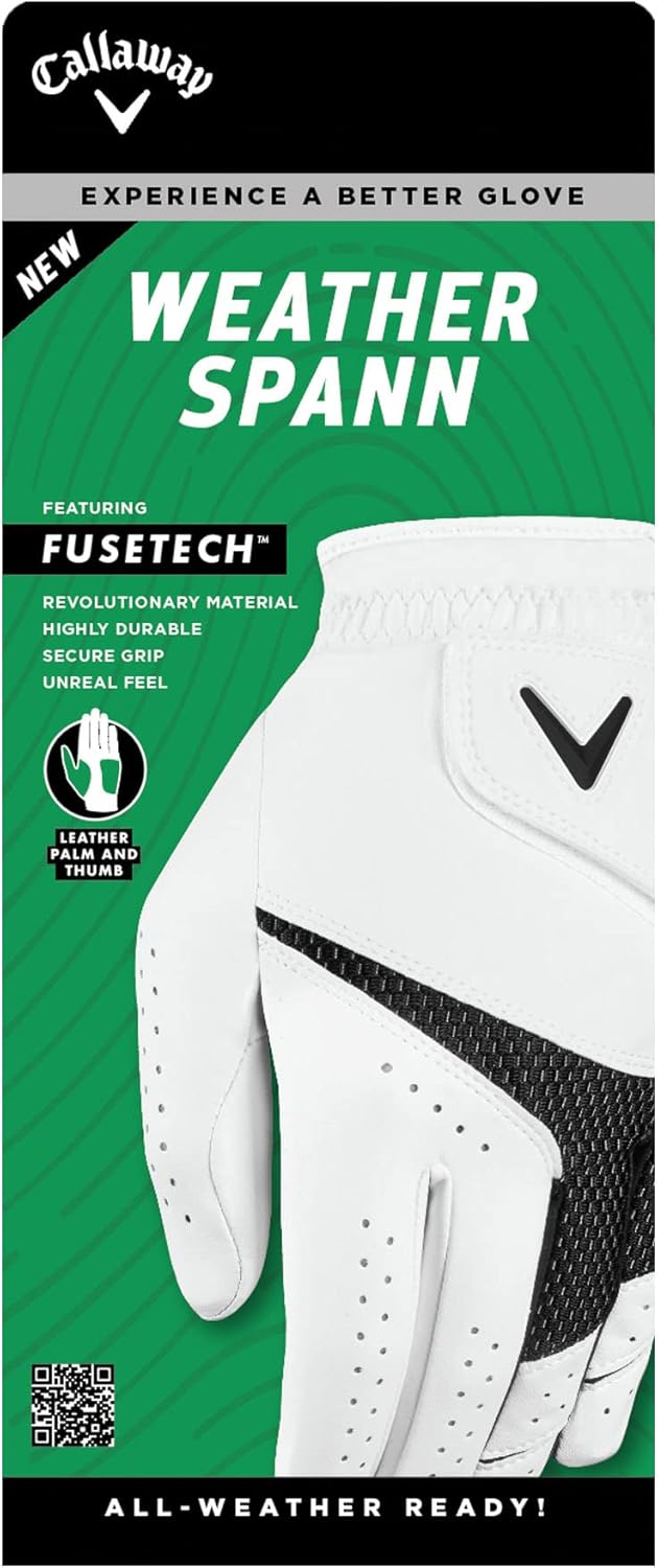 I’ve been an avid golfer for years, and finding the right pair of gloves has always been a challenge, especially when the weather turns unpredictable. That’s until I discovered the Callaway Golf Weather Spann gloves. These gloves are a true game-changer on the course!The first thing I noticed was the exceptional fit. They mold to my hands like a second skin, ensuring maximum comfort throughout my swing. The premium Japanese synthetic material offers a feel that’s both soft and durable, striking the perfect balance between comfort and longevity.But where these gloves really shine is their performance in varied weather conditions. The Weather Spann technology provides excellent grip, whether I’m playing under the hot sun or in an unexpected downpour. The breathability of the material keeps my hands cool and dry, which is crucial for maintaining a steady grip on those high-stakes shots.What’s more, the flexibility and tactile sensitivity allow for an unhindered range of motion, giving me the confidence to make each shot count. And the sleek design with the Callaway logo adds a touch of class to my golf attire.In summary, the Callaway Golf Weather Spann gloves are the best I’ve ever owned. They’ve become an essential part of my gear, providing the grip and comfort I need to play my best, no matter the weather. Five stars without hesitation!I hope this review meets your expectations. If you need any adjustments or additional information, just let me know. Happy golfing! 😊