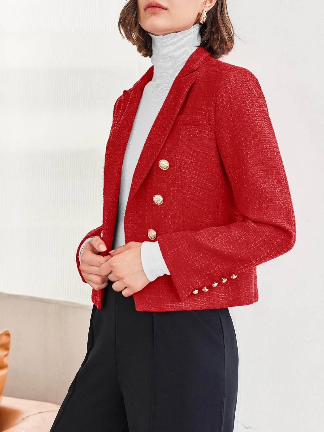 8 reviews for Cicy Bell Girls Double Breasted Cropped Tweed Blazer Jackets Lapel Open Entrance Lengthy Sleeve Enterprise Swimsuit Jackets with Pocket