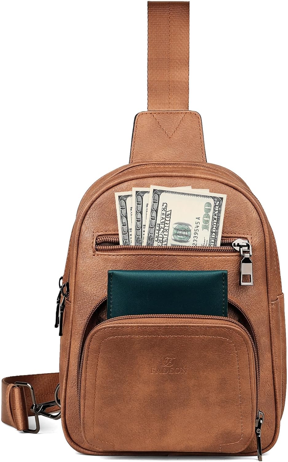 FADEON Sling Baggage for Ladies Crossbody Baggage, Designer PU Leather-based Sling Purse Multi-Pocket Packs with Card Slot Purse Brown