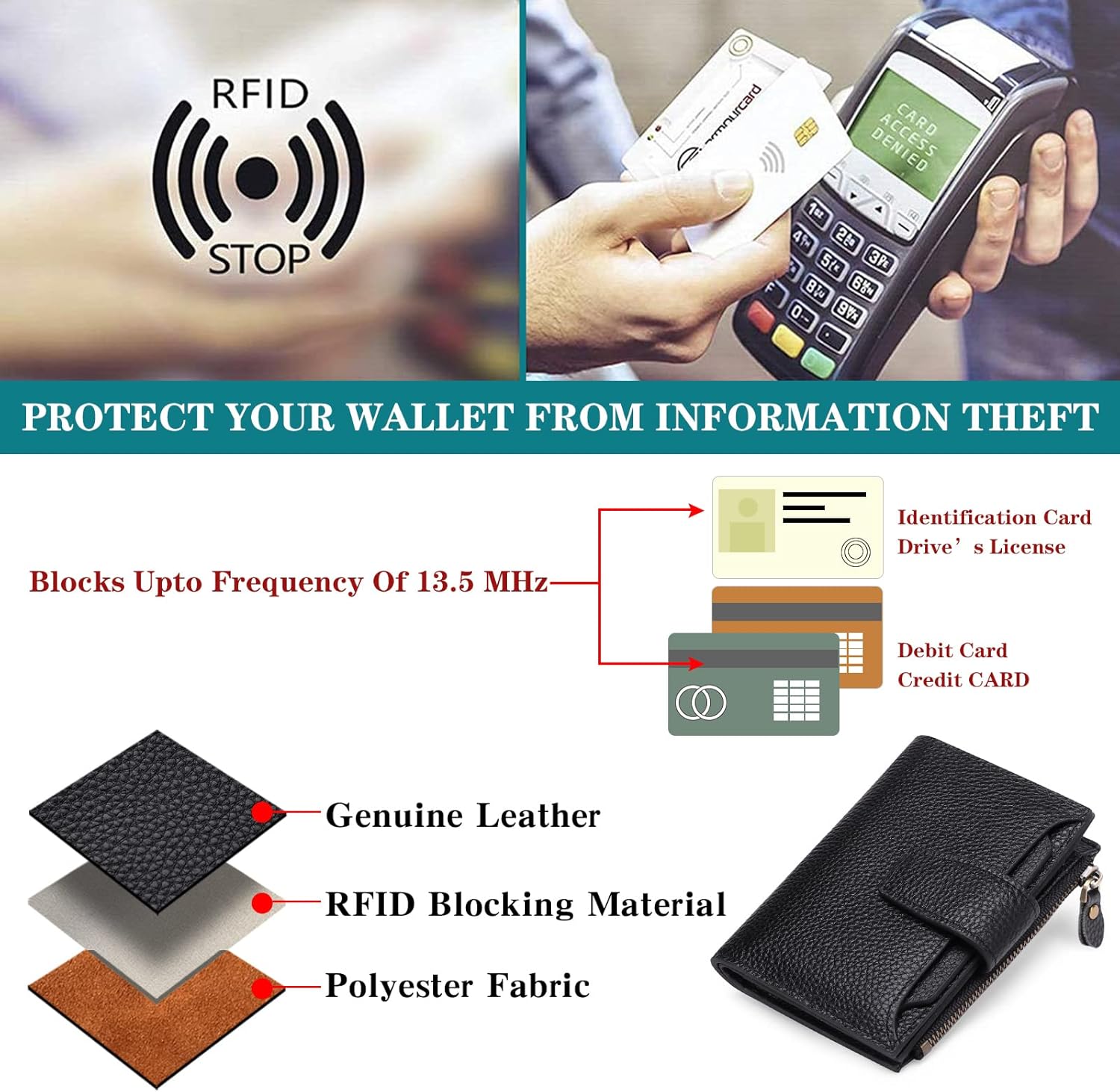 Defend your id whenever you stroll out the door with our bi-fold leather-based RFID pockets!