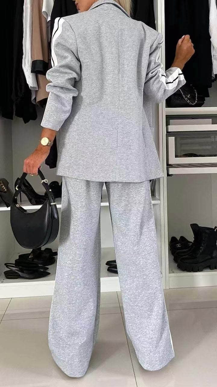 Brewee Enterprise Informal Girls Blazer and Vast Leg Pants Two Piece Outfits Work Workplace Informal Go well with Set