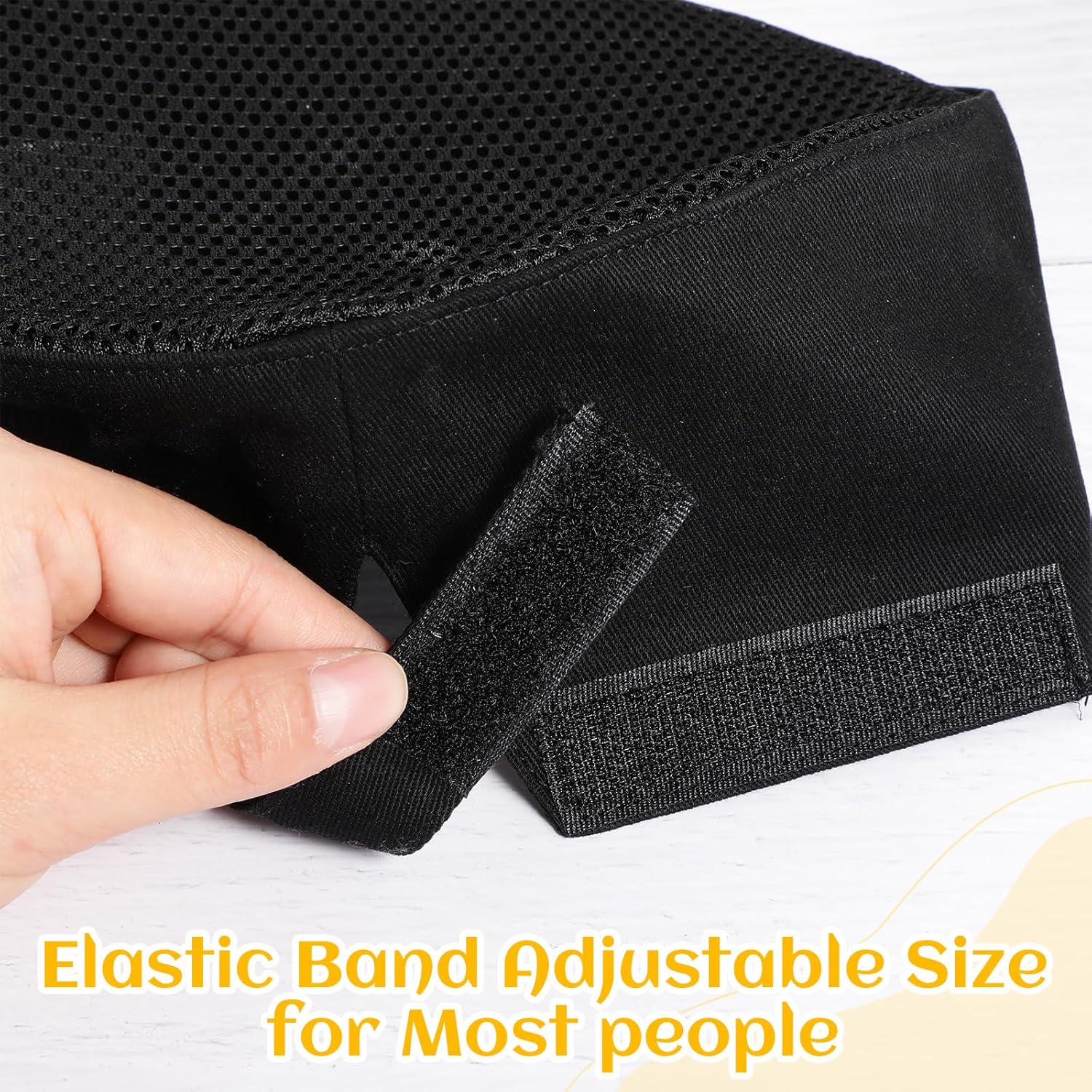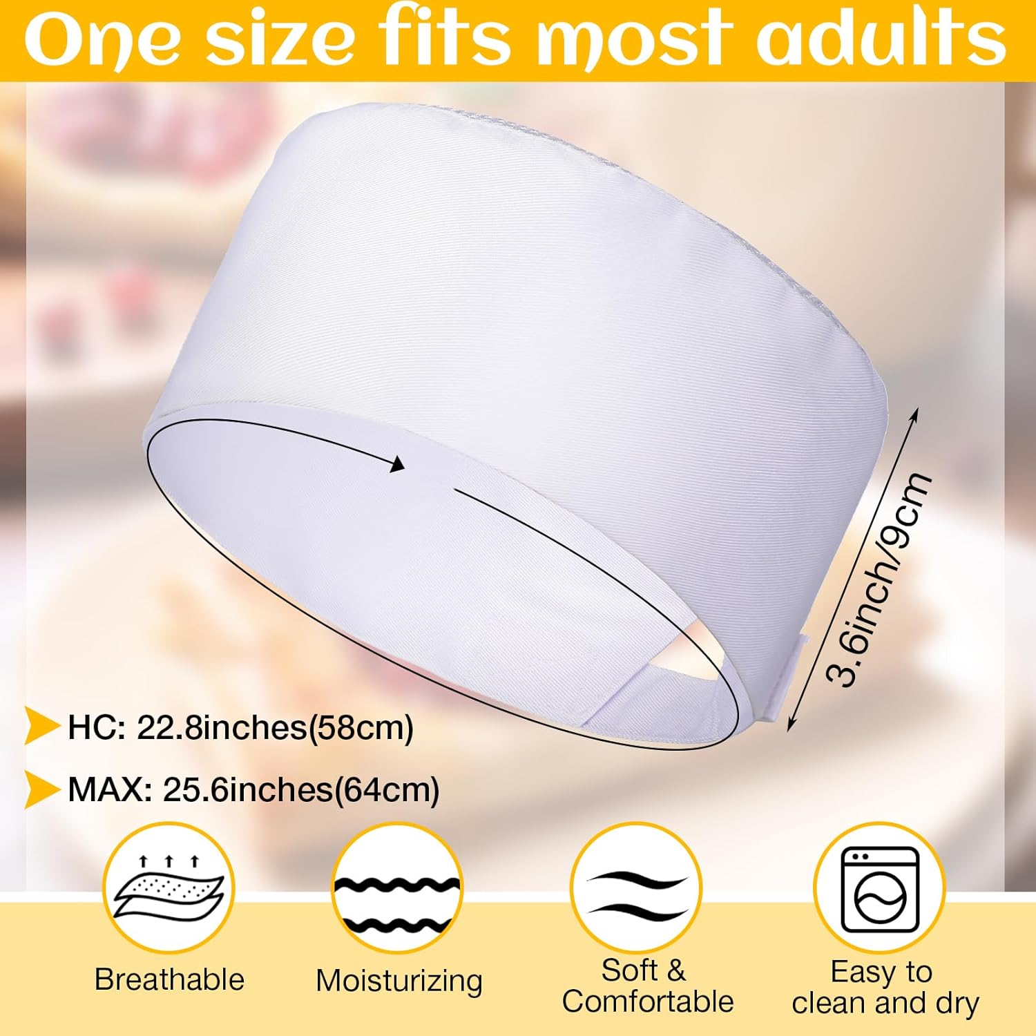 These baking caps fit a range of head sizes because of adjustable Velcro strap in the back and they wash well. You forget you’re wearing it because they are comfortable.