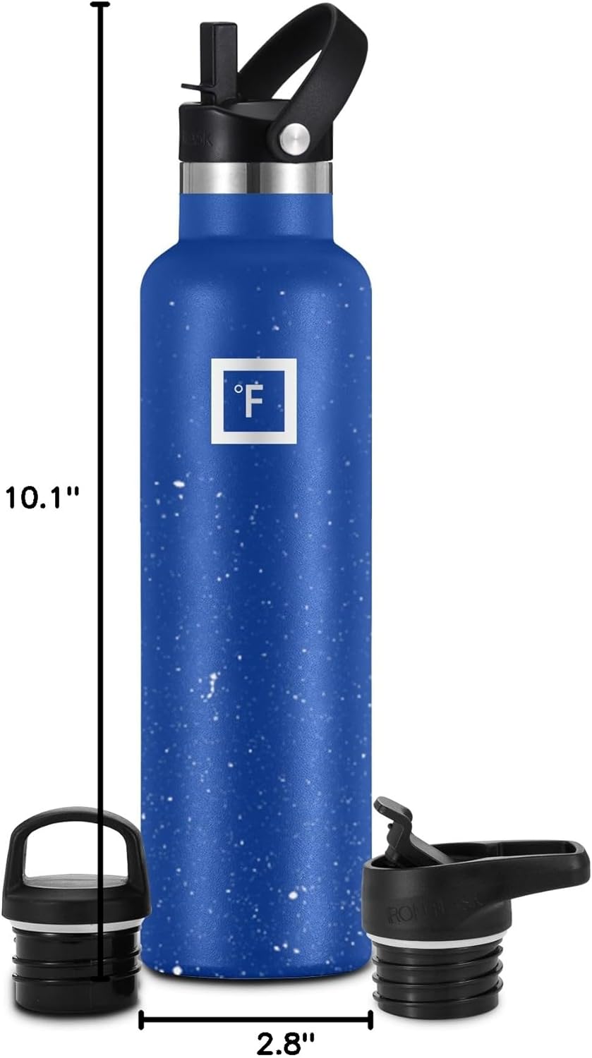 IRON °FLASK Tenting & Climbing Hydration Canteens – 3 Lids (Slim Straw Lid) Leak Proof Vacuum Insulated Stainless Metal – Sizzling & Chilly Double Walled Sports activities Water Bottle – Cobalt Blue Speckle, 24 Oz
