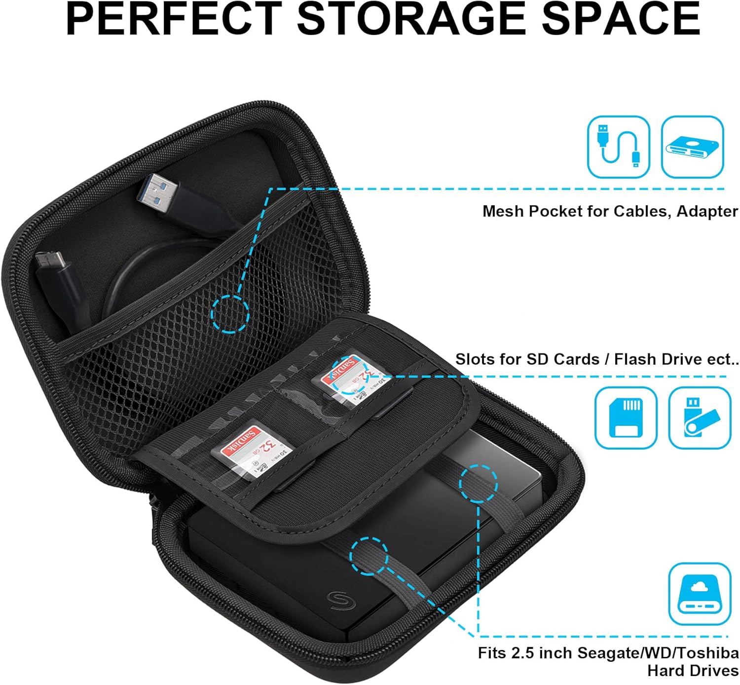COMPATIBLE & SIZE – Suits Seagate Transportable Exterior Onerous Drive / Seagate One Contact HDD, Western Digital WD Components / WD My passport Exterior Onerous Drive HDD, Toshiba Canvio Fundamentals / Canvio Flex / Canvio Advance Transportable Exterior Onerous Drive HDD, Seagate Extremely Contact HDD / Seagate Backup Plus Slim 2.5 inch Transportable Exterior Onerous Drive 1TB 2TB 4TB 5TB 6TB USB 3.0 HDDs. Inside Dimension: 5.35″ x 3.50″ x 1.18″.