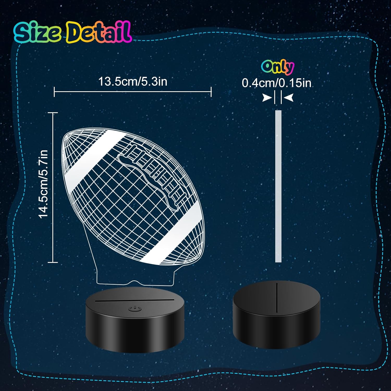 Good Soccer Presents 3D Visible Results: soccer presents children evening gentle inventive lamp is an revolutionary creative ambiance gentle, optical acrylic gentle information plate engraving soccer 2D graphics, 3D optical phantasm soccer/rugby ball visible impression. Distinctive lighting results superb optical visible phantasm bed room decor lamp, It makes your room extra attention-grabbing. Ultimate sports-themed room evening gentle for younger soccer followers ages 8-13.