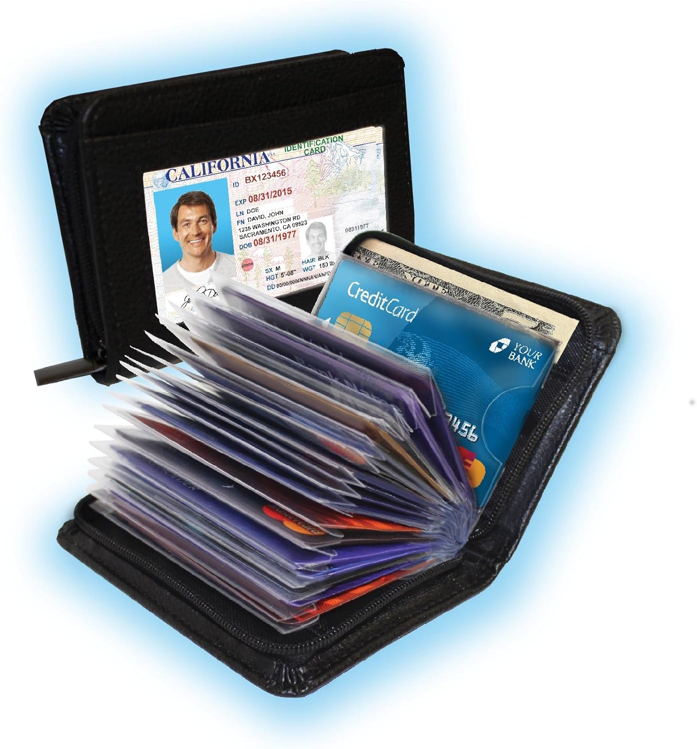 Incredible wallet, but I am sure that the card holder will separate from wallet, just like my others have all done.Still worth it, as this wallet holds so much, has a strong zipper and is RFID.