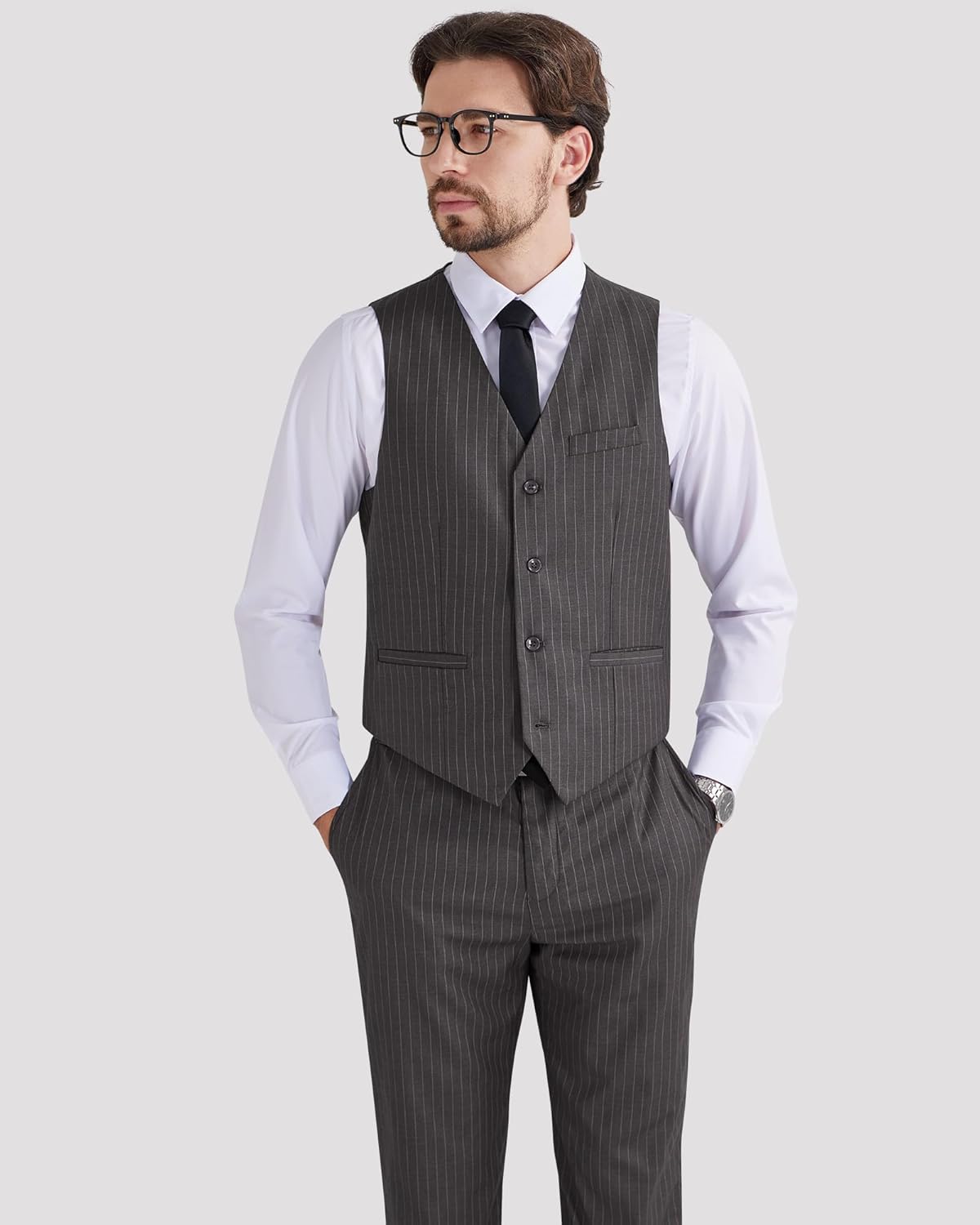 8 reviews for MAGE MALE Males’s Pinstripe Go well with 2 Piece Vest and Pants Set Wedding ceremony Groomsmen Summer time Slim Match Formal Promenade Tuxedo