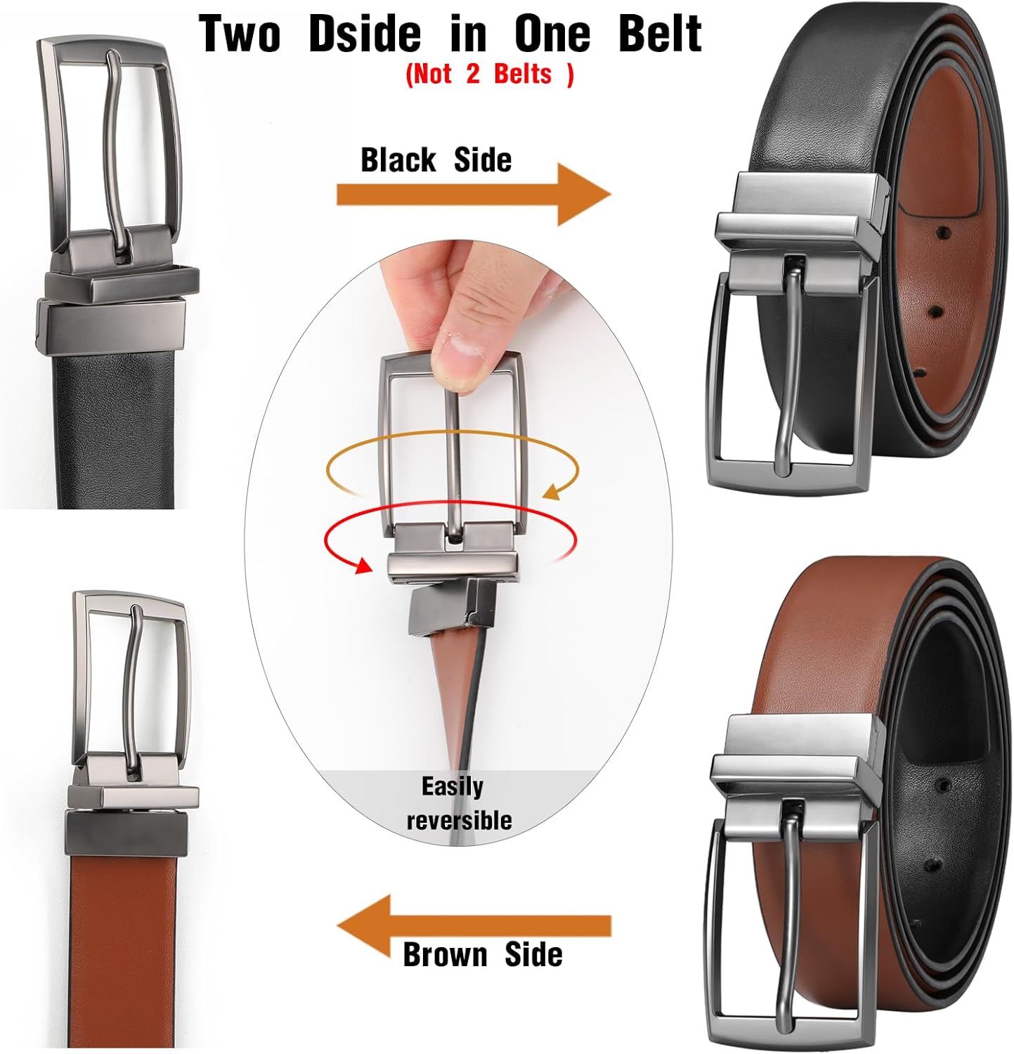 Males’s Belt Leather-based Reversible Belt for Males Gown Pants Golf 1 3/8″