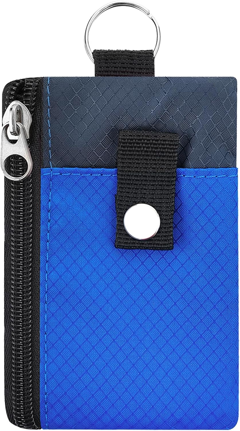 Minimalist Small Pockets for Males Girls with 2 Zip Pockets, Multi Purposeful ID Case with Keychain and Card Holder, Coin Purse Badge Lanyard Pouch for Boys Ladies Journey -Blue+DarkBlue
