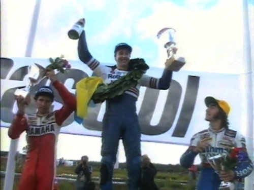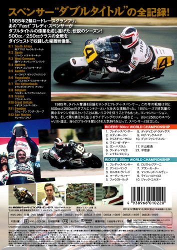 83年、三気筒のNS500でキングケニーとの激闘の末、当時最高峰クラス最年少チャンピオンとなったフレディー・スペンサー。84年は四気筒のNSRでタイトル防衛に挑んだが新開発のマシンの信頼性に苦しみライバルであるエディー・ローソンに奪われてしまう。そんな彼の新たなチャレンジは250cc、500ccのダブルタイトル獲得。HONDAは彼のためにNSR250を用意し2年目となるNSR500もフレディー・スペシャルと言える大変ピーキーなマシンに仕立て上げたと言われています。これによりプライベーター主体だった250ccの勢力図が良くも悪くもワークス主体に激変しスペンサー自身のライダー人生を劇的に縮めてしまいました。内容は2クラスのレースだけでなく各有力ライダー達の長めインタビューがあったり(ヨーロッパのインタビュアーらしく結構聞き難いことも聞いたりしてて面白い。)して楽しめる内容でした。画質、音質は当時のものなので仕方ない部分もありますが、ナレーションも字幕で時々笑えないジョークを言ったりするのがたまに傷でした(苦笑)贅沢を言えばこの年開催されたサーキットのコース図でも付録として付いていれば良かったかなと思います。若い世代は存在すら知らないサーキットもあるんじゃないでしょうか?本来なら星5つあげたいのですが、ナレーションとコース図のぶん厳しくして星4つとさせてもらいました。
