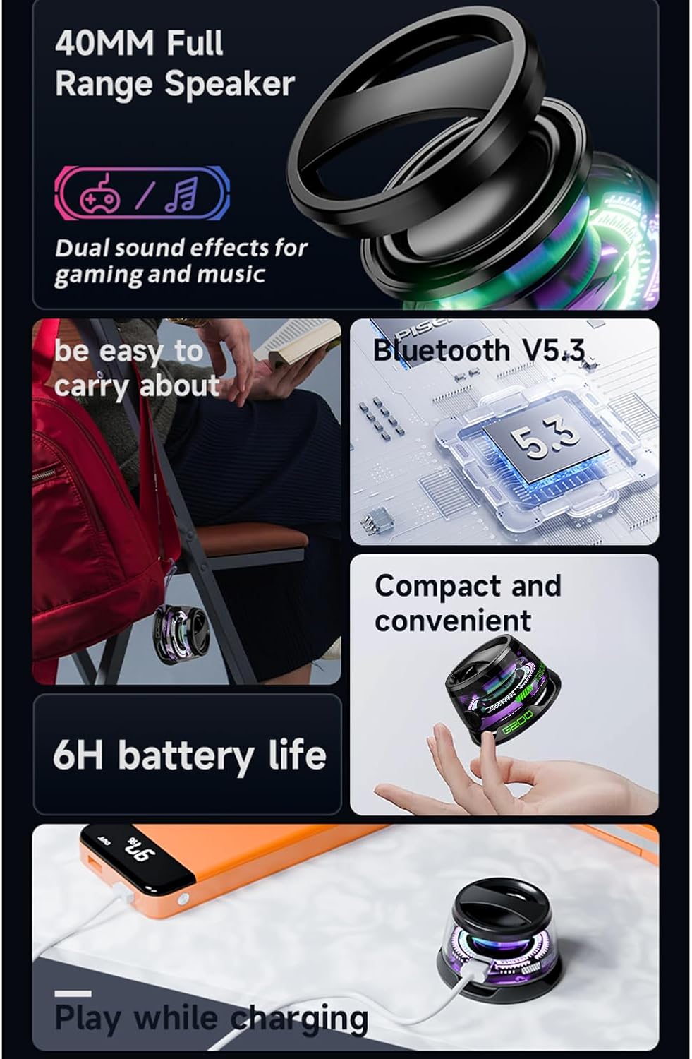 【Sturdy Battery Life】G200 moveable bluetooth speaker has a non-slip silicone backside, built-in high-capacity battery, IPX5 waterproof, and a battery lifetime of as much as 6-7 hours, The speaker is compact and simply matches right into a bag to hold round, particularly appropriate to be used on the go, out of doors events or tenting.