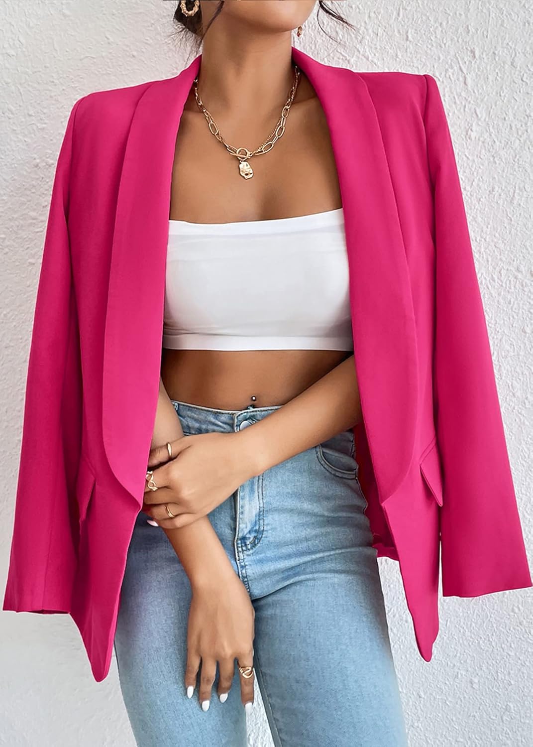 Purchaser Reveals for Sizzling Pink Open Entrance Blazer Jackets