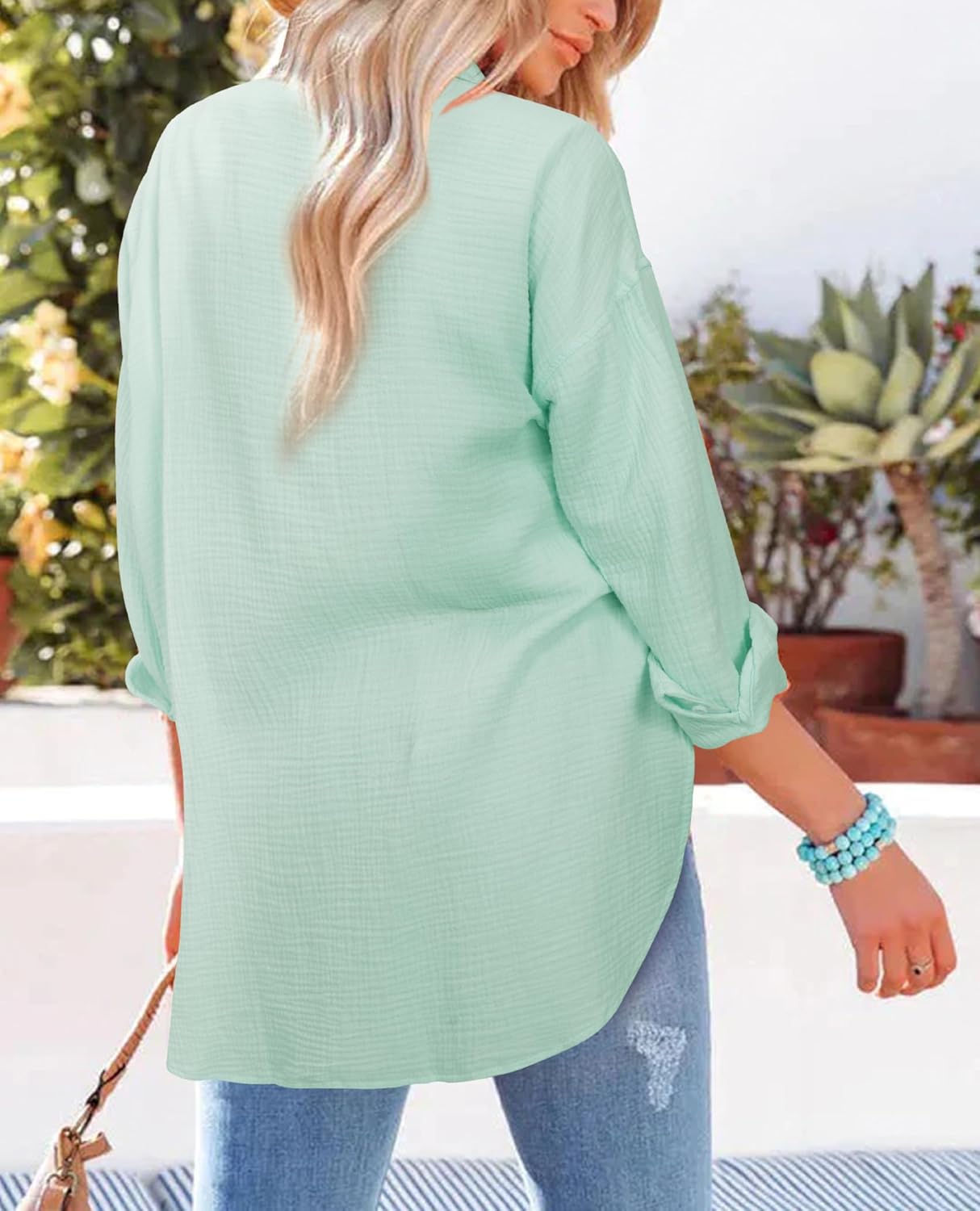Uncover unmatched consolation and magnificence with our unique button-down shirt, made out of smooth, pure cotton gauze. Excellent for contemporary ladies in search of a relaxed but refined look, this shirt’s outsized silhouette provides a laid-back but refined allure to your wardrobe.