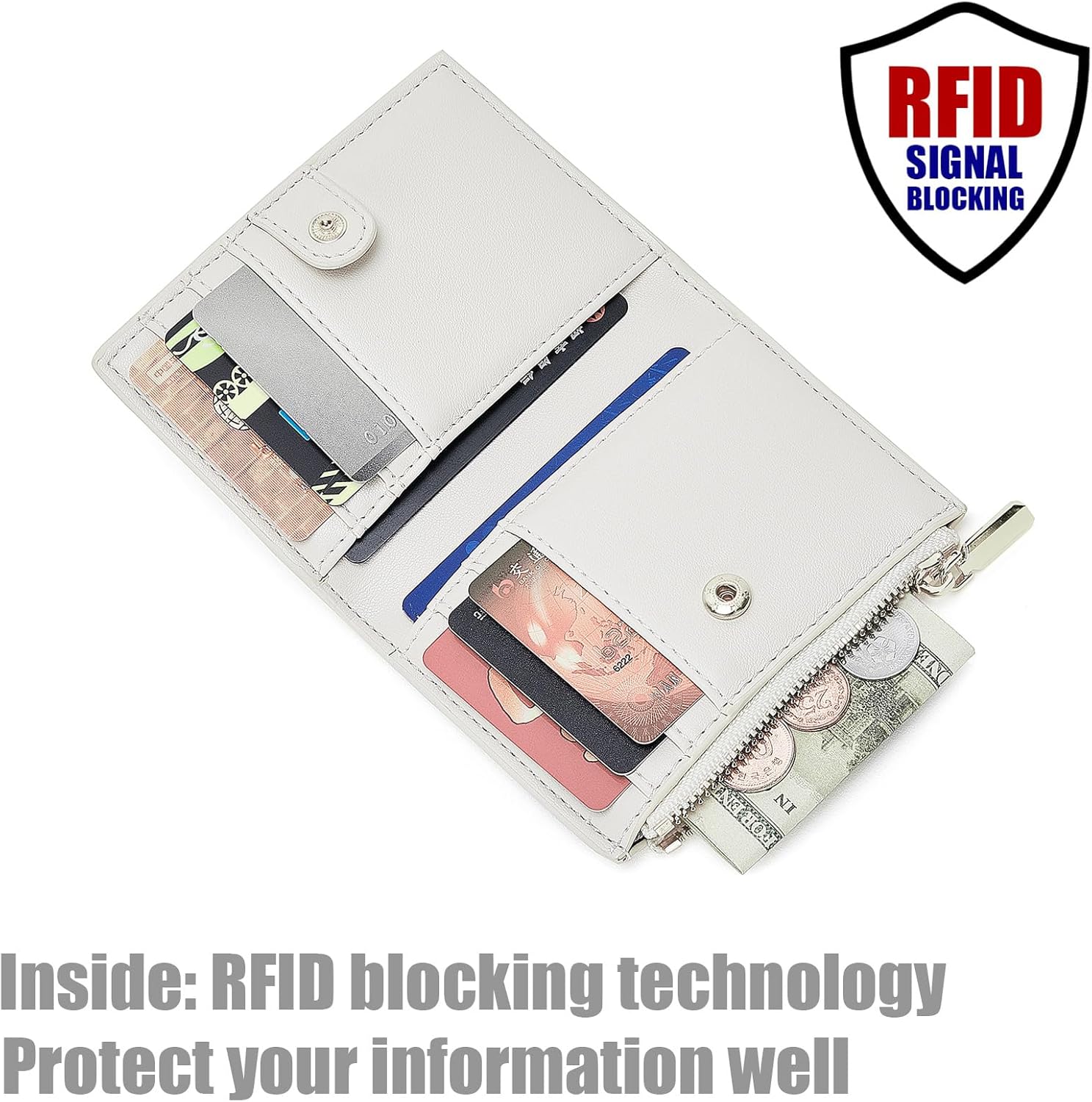 Slim Minimalist RFID Blocking Credit score Card/Money/ID Holder ,Entrance Pocket Pockets with Zipper (White)