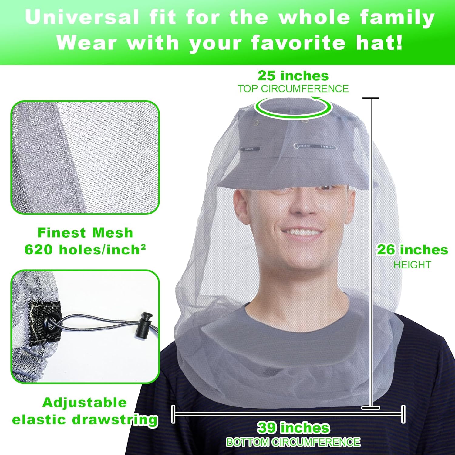 The big measurement mosquito head web might help you take pleasure in your outside life with out having to fan the little gnats and mosquitoes away out of your face, ears and neck. It even protects towards midges and NoSeeUms.