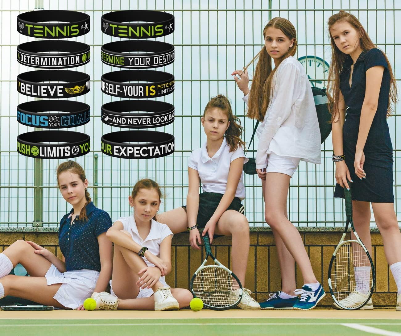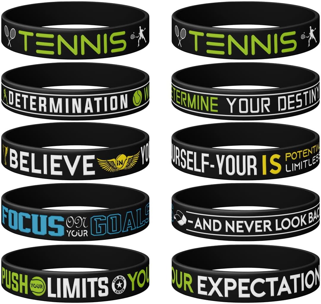 Tennis Silicone Wristbands Birthday Occasion Black Inspirational Silicone Wristbands, Tennis with Motivational Sports activities Quotes, Unisex Tennis Occasion Presents Jewellery Equipment for Boys | Women (12 Items)