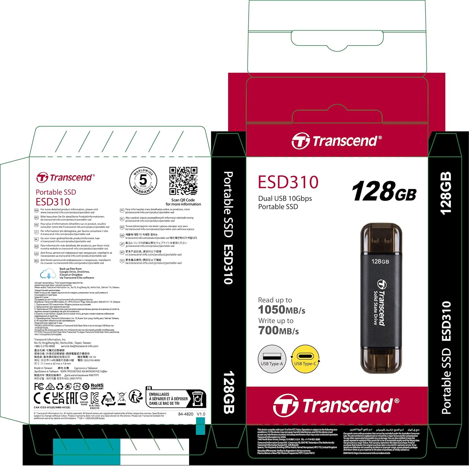 Transcend 128GB, Exterior SSD, USB 3.2 Gen2, As much as 1050 MB/s, Kind A and C, Moveable SSD with 2-in-1 Kind C and Kind A, for iPhone, iPad, Android, Automotive Audio System, Sentry Mode, Black – TS128GESD310C
