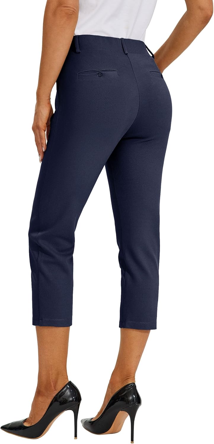 Willit Girls’s Capri Pants Gown Yoga Work Capri Slacks Stretch Workplace Enterprise Informal Pants Excessive Waisted 21″